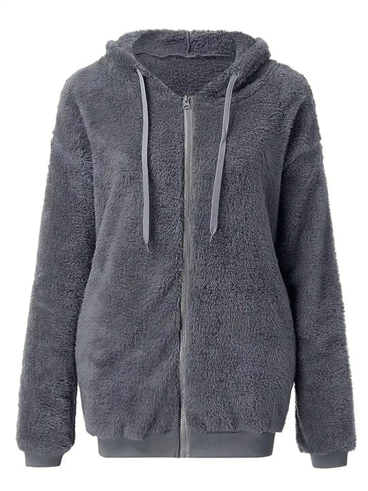 Full Size Fleece Zip-Up Hooded Outerwear Plus Size